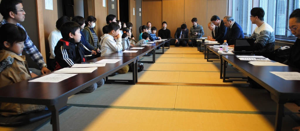 12月22日(土)、来年の出町子供歌舞伎曳山祭り(4/29,30開催)の子供役者8名と、振付指導者の松川竜之介さん(愛知県豊田市)、衣裳着付の小栗幸江さん(岐阜県瑞浪市相生座館長)との初顔合わせが行われ、子供役者・父兄・役員の約30名が参加しました。顔合せでは演目の概要や見せ所、祭り本番までの稽古日程などが説明され、配役が決定しました。