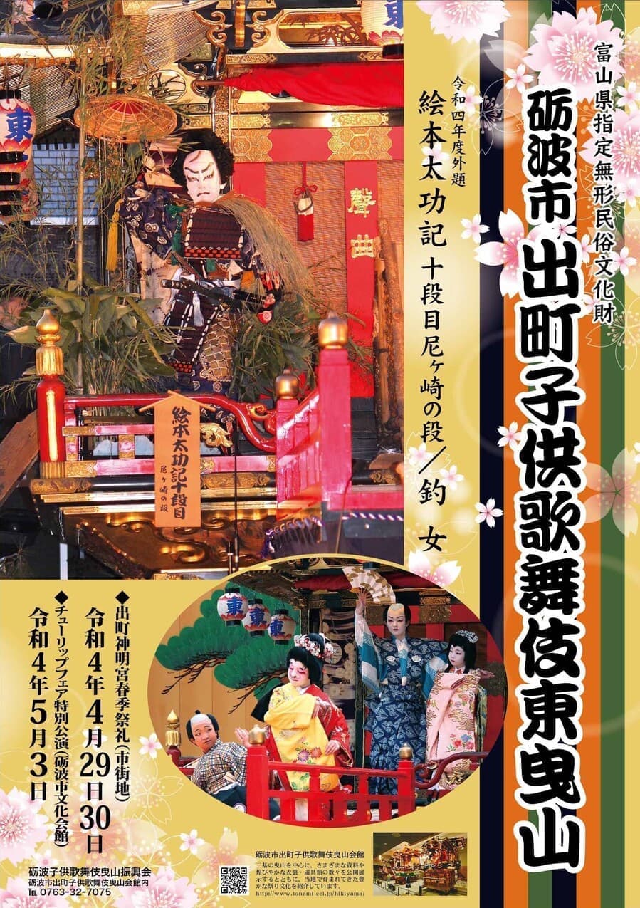 3年ぶりの出町子供歌舞伎曳山が2日間にわたり執行され、豆役者たちの一世一代の演技に、会場は温かい声援と大きな拍手に包まれていました。(2022.4.30)
