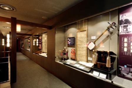 展示ケース 展示ケースには、『曳山の歴史』『子供歌舞伎の衣裳』『浄瑠璃文化』『出町の歴史』など、それぞれのテーマに沿って、 わかりやすく説明文を加えて、さまざまな資料を展示しています。展示されている資料、衣裳や小道具は、できる限り現在も使用されている本物を展示するようにしています。